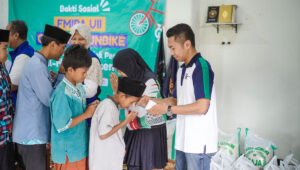 Dekan FMIPA UII, Prof. Riyanto, S.Pd., M.Si., Ph.D. serahkan bantuan sosial. (foto: Pan FMIPA Charity)
